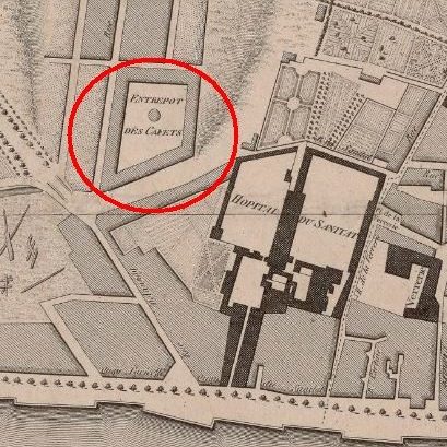Représentation de l’ancien entrepôt des cafés réalisée par Perrin, Archives de Nantes