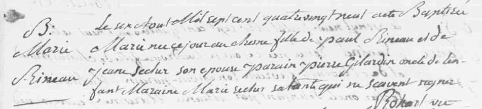 Marie fille de Jean RINEAU et de Jeanne SECHER demeurant au Chêne à Saint Julien a juste 13 ans quand elle rencontre Noël Hivert en 1802 pour la première fois, à l’occasion du baptême, de Françoise, la deuxième fille de son frère aine René Hivert.