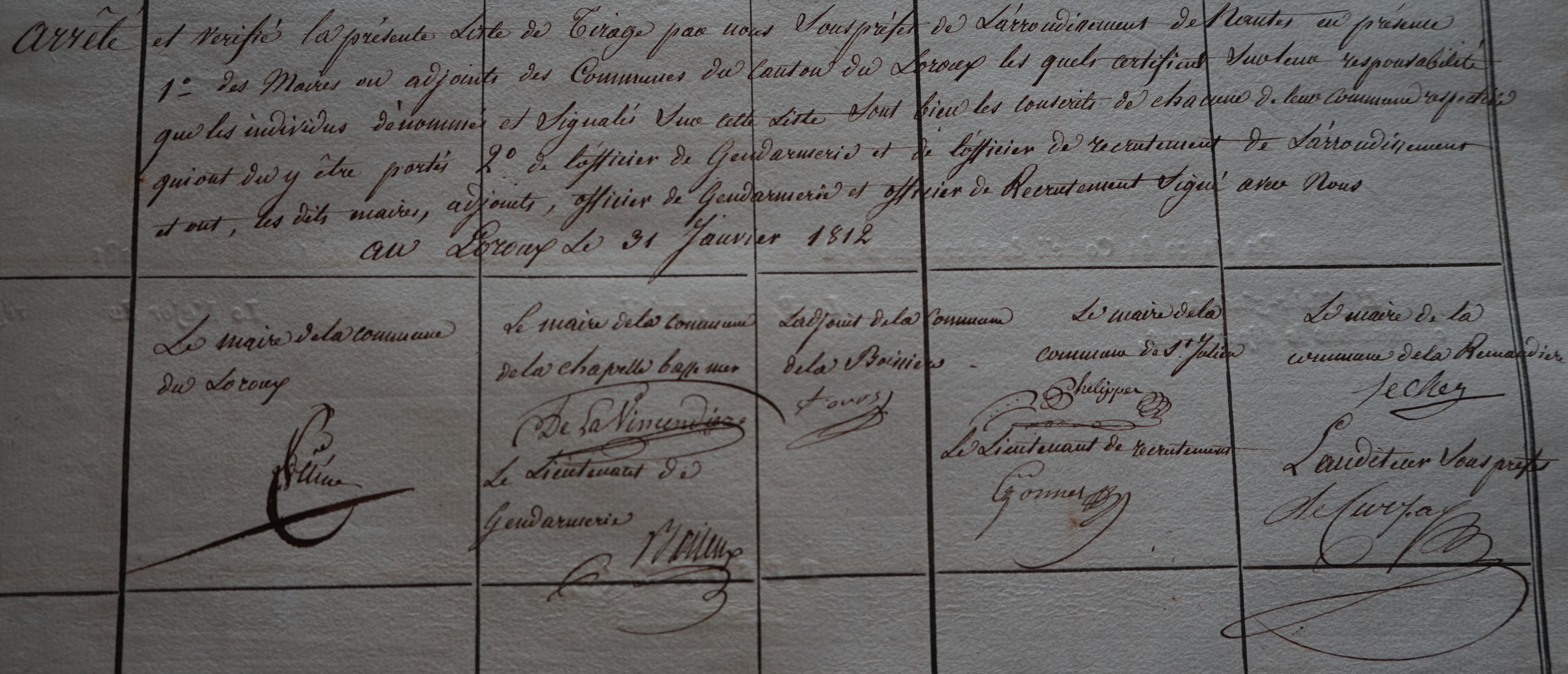 La présence du préfet de Loire-inférieure VAN STYRUM[3] montre que ce recrutement est hautement stratégique pour les autorités départementales[4]. Il est vrai que Napoléon, Empereur des Français est alors le maître de l’Europe en ce début d’année 1812, mais sa politique rencontre de nombreuses oppositions, tant en Espagne, qu’ en Allemagne, Autriche et Russie, sans compter l’hostilité constante du Royaume-Uni…