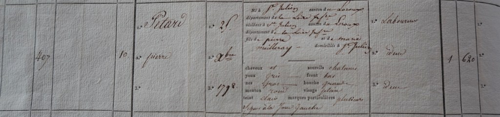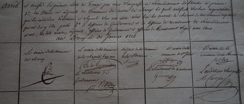 Les premiers jours de janvier Jean reconnait son nom sur l’affichage public de St Julien. Puis à la fin de la grand-messe il entend le maire, Pierre Marie PHELIPPES, égrener le nom de tous les jeunes de sa classe d’âge leur demandant de se présenter le 31 janvier 1812 au chef lieu de canton.