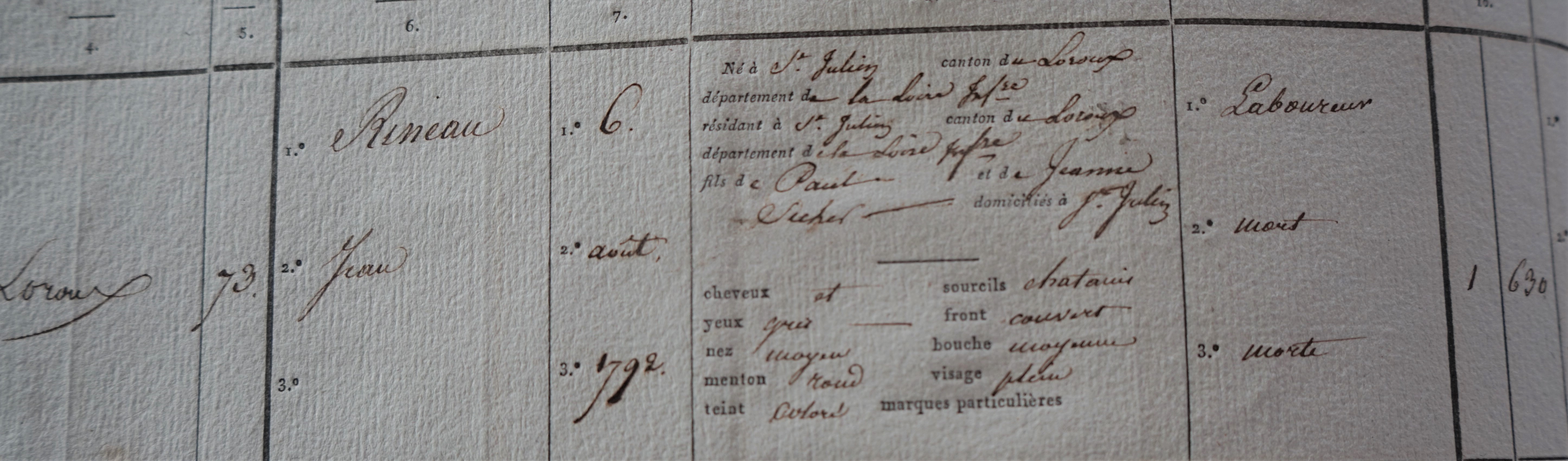 En 1812, le frère de Marie RINEAU, Jean a 20 ans.