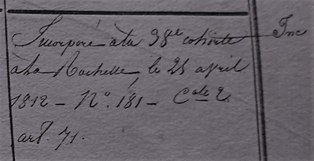 Puis au mois de mars de cette même année, Jean reçoit son affectation. Il doit se rendre à Nantes pour être incorporé à la 38ème cohorte de la garde nationale à La Rochelle.