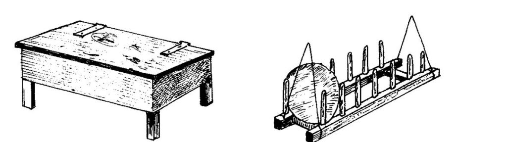 Celui de Noël et Marie isolé d’un rideau possède un marchepied. Mathurine, âgée de 2 ans, couche avec les parents tandis que Pierre le nouveau né dort au pied du lit dans un berceau d’osier, confectionné par Noël qui cultive plusieurs oseraies dans les terres basses du village du Chêne.