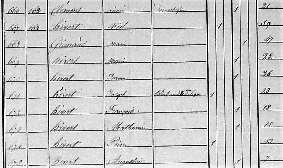 Dans la chambre trois lits garnis d’une paillasse se touchent ; un lit pour les filles Marie, Jeanne, Françoise âgées de 6 à 15 ans. Joseph lui a son lit mais le partage parfois avec Marie BAGRIN sa grand-mère qui dort à ses côtés quand elle séjourne au Chêne.