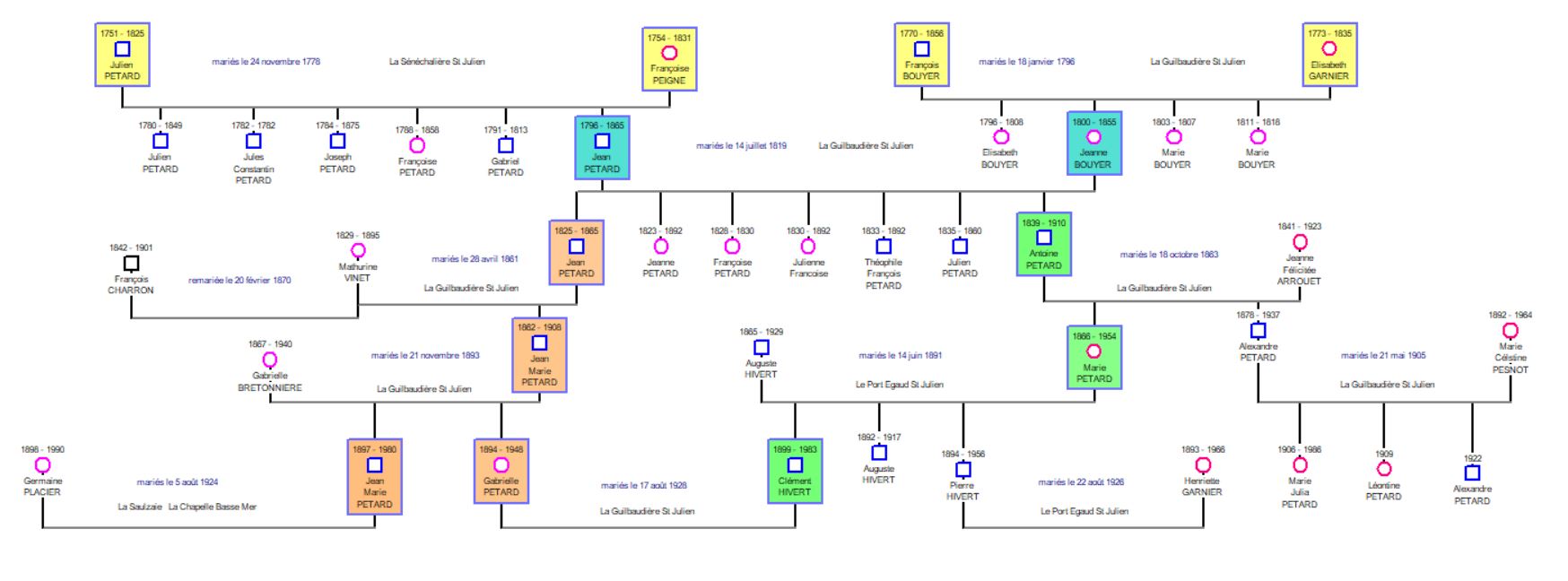 Jean présente l’ensemble des résidents de la maison de la Guilbaudière. Tout d’abord, Jeanne sa femme qu’il a épousée il y a maintenant plus de 16 ans le 14 juillet 1819 puis son beau père François BOUYER âgé de 66 ans qui vit avec eux.