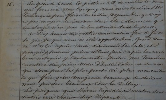 « Nous sommes revenus en fin de campagne sur nos terres habituelles dans la grande baie de Cerros où nous avons pu compléter la cargaison d’éléphants… »