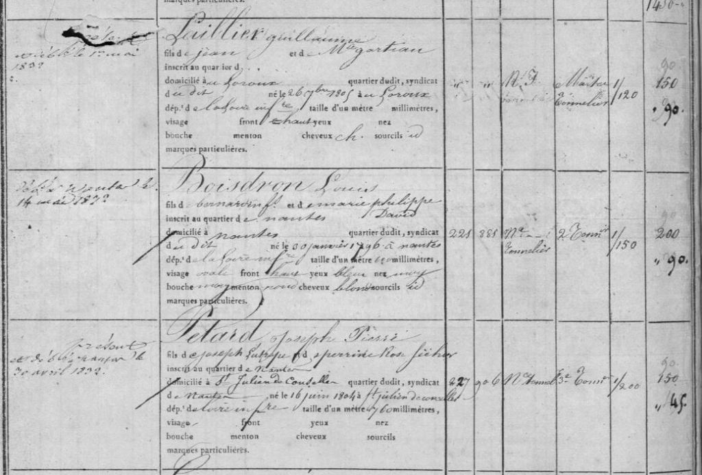 C’est au printemps 1841 que les deux hommes que Jean Pétard et  Joseph LALLIER revoient Guillaume LALLIER. Celui-ci  vient alors chez son cousin commander quelques caisses de Muscadet à l’occasion de la préparation de son mariage