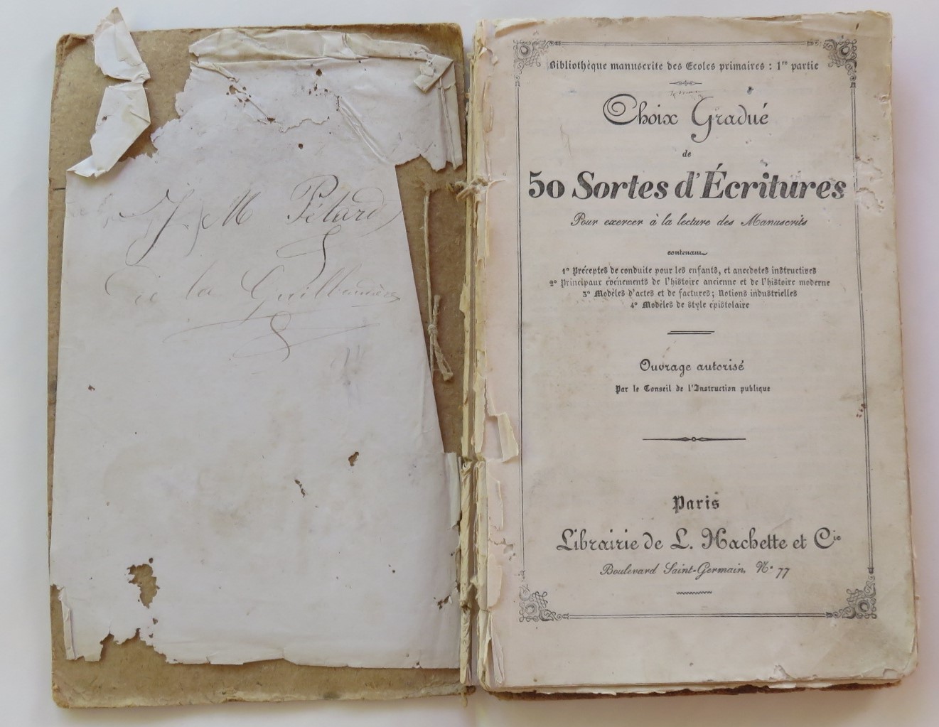 Livre de JM Pétard – Archives familiales – Choix gradué de 50 sortes d’écritures – de Théodore Henri Barrau – Hachette & Cie Librairie, Paris – 1855 Pour découvrir le document
