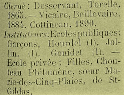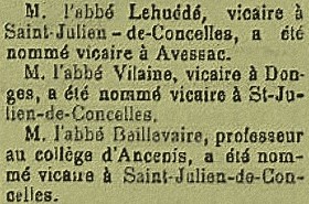 En 1894, ils sont deux vicaires à Saint-Julien : Edouard BEILLEVAIRE et François COTTINEAU avec les deux anciens curés, DESSERVANT et TORELLE