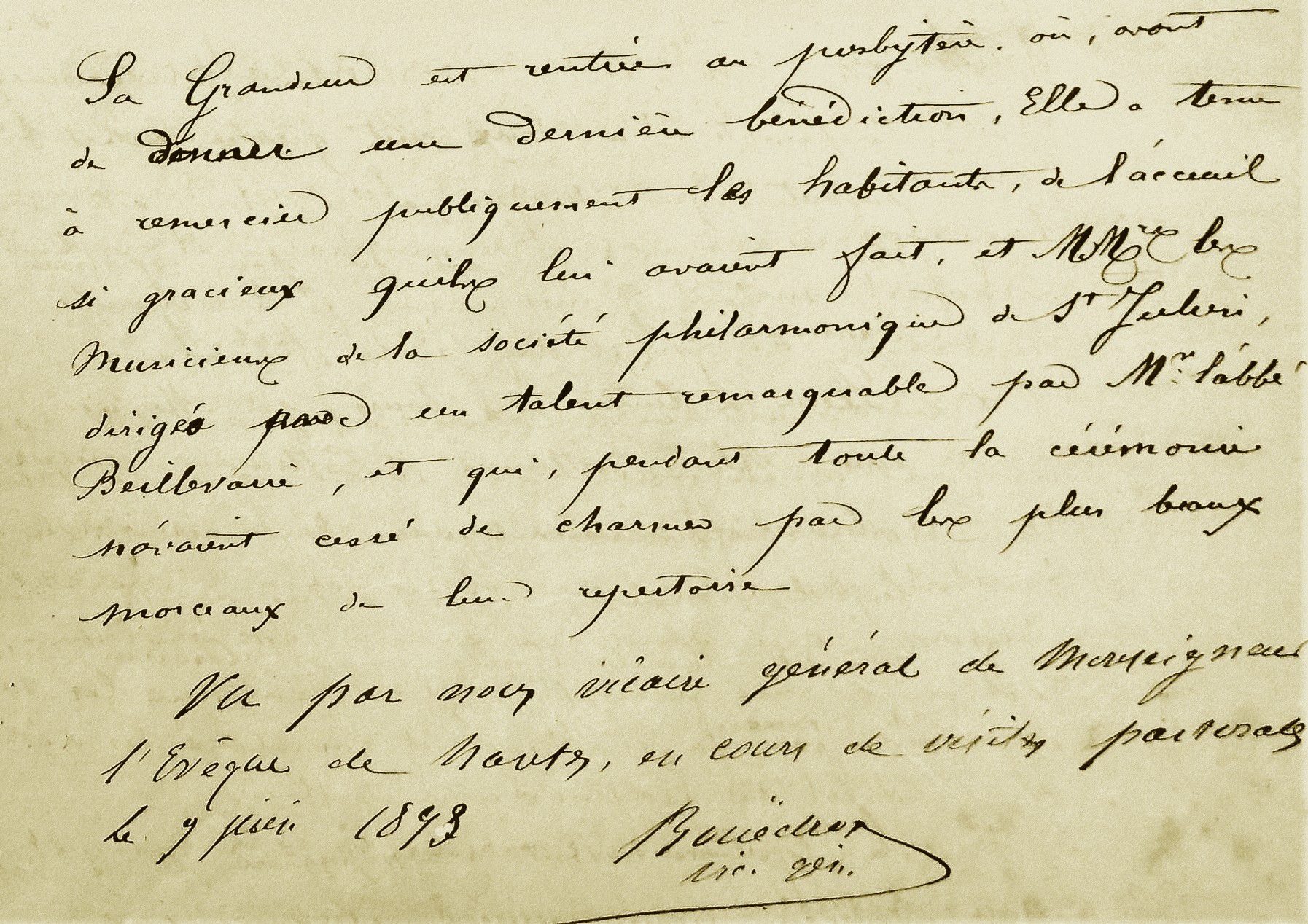 Lors de la venue pour la cérémonie de confirmation ce même mois de juin 1893 de l’évêque de Nantes, Auguste-Léopold LAROCHE, la prestation de la musique a été également vivement saluée…
