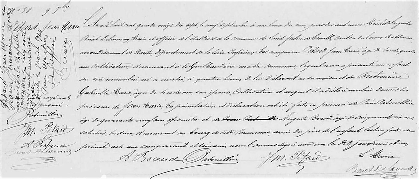 Acte de naissance de Jean-Marie Pétard le 9 septembre 1897– Saint-Julien-de-Concelles