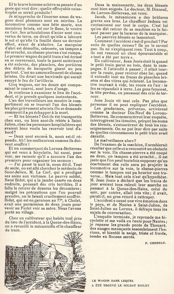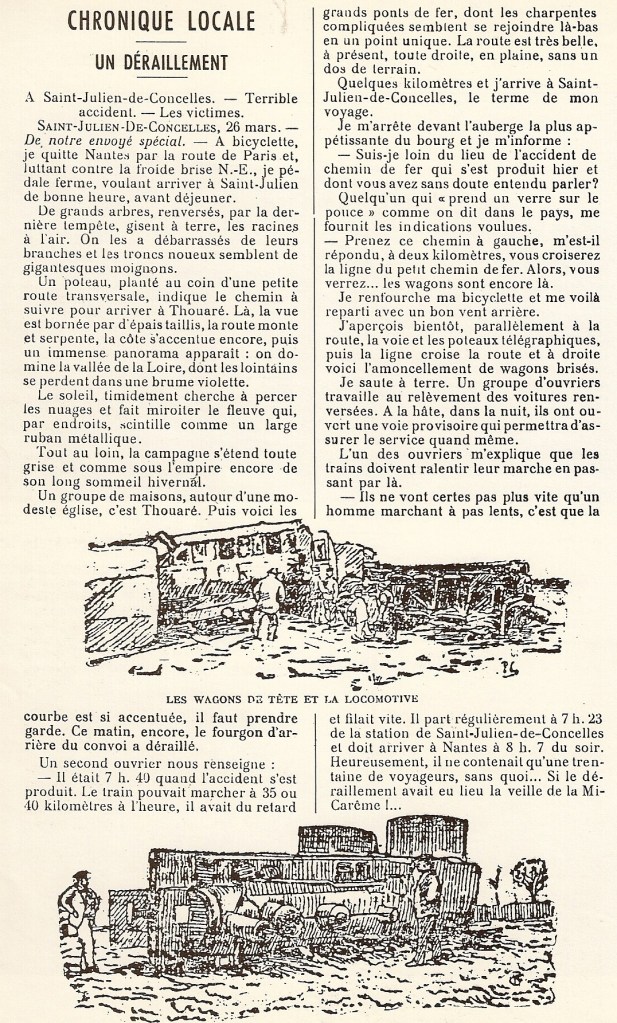 Cette anecdote fait sourire Jean-Marie, les hommes ayant évoqué lors de leur passage à la Guilbaudière la mise en service de la ligne il y a tout juste un an, qui facilite les voyages vers Nantes mais aussi le malheureux accident de mars 1900 et surtout la façon dont le journaliste du « Phare de la Loire » a relaté l’événement.