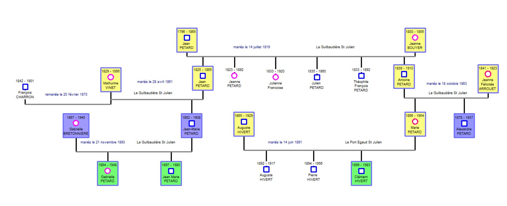Rendus à la Guilbaudière adultes et enfants s’échangent quelques cadeaux. Du haut de ses cinq ans Sophie Lainé est heureuse de tendre à Gabrielle, 6 ans, une poupée et remet à Jean Marie, 3 ans, une petite caisse contenant des soldats de plomb. Jean-Marie MORICE accompagné de son épouse, ancien instituteur et témoin du mariage de Gabrielle et Jean-Marie sont également de la fête. Tous dégustent le fastueux déjeuner concocté par Gabrielle et Marie BAGRIN, la fille de maison.