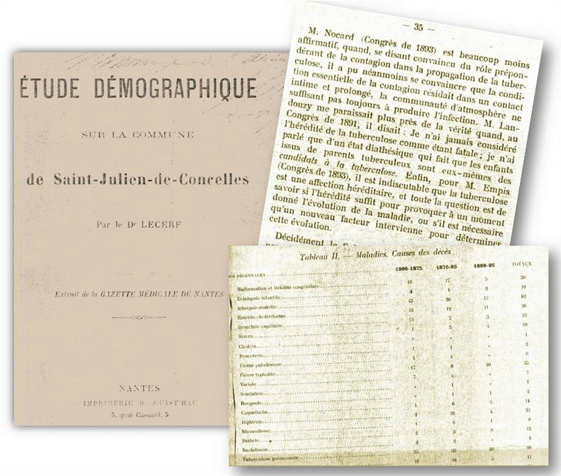 La semaine d’après, Jean-Marie se rend à la Salmonière au cabinet du docteur LE CERF qui suit depuis longtemps l’ensemble de la famille. La conversation roule sur la maladie de Jean-Marie qui lui dit : « J’ai lu attentivement votre opuscule, par ailleurs très intéressant, sur l’état sanitaire et médical de la commune paru il y a quelques années. Vous évoquez à un moment l’hypothèse de la transmission intergénérationnelle de la tuberculose. Qu’en est-il exactement car mon père est semble-t-il mort prématurément de la même maladie à 40 ans ? »