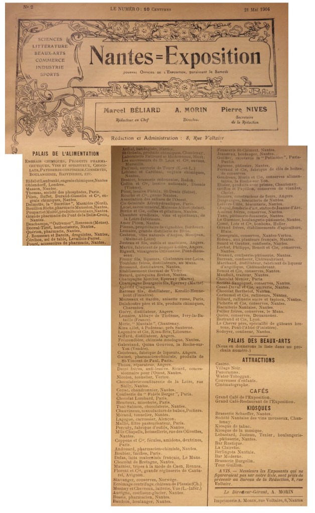 Un nombre important d’exposants nantais sont représentés comme le relate le journal de l’exposition.