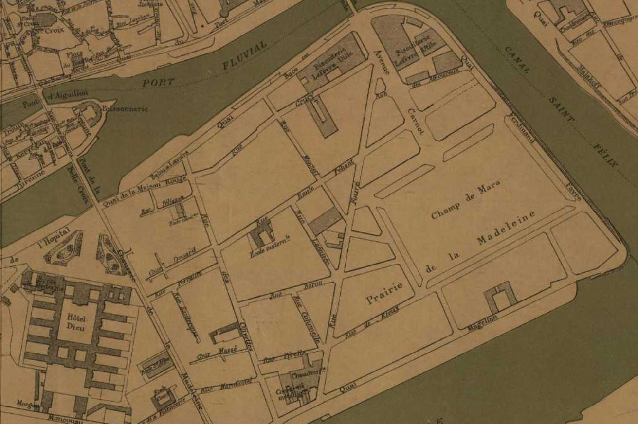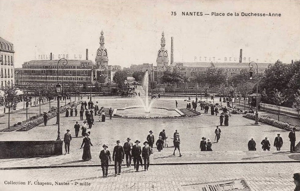 Marie HIVERT, la fille aînée de Marie-Célestine et de Pierre a épousé Julien Rousseau, aide-fromager au « Château », il y a 2 ans. Elle avait juste 19 ans. Sur les conseils et quelques appuis financiers du patriarche le couple s’installe dans cette rue populaire et commerçante de Nantes. La population ouvrière « des Olivettes » s’approvisionne en effet dans ces multiples boutiques du quartier qui compte aussi plusieurs filatures, tanneries, manufactures[1]… et surtout les grandes biscuiteries en développement : la « Biscuterie nantaise » de la place François II et la maison « Lefèvre-Utile » située près du quai Malakoff. On compte dans cette rue cinq épiceries, un teinturier, une cordonnerie, une mercerie, une boulangerie, un salon de coiffure et de nombreux cafés !