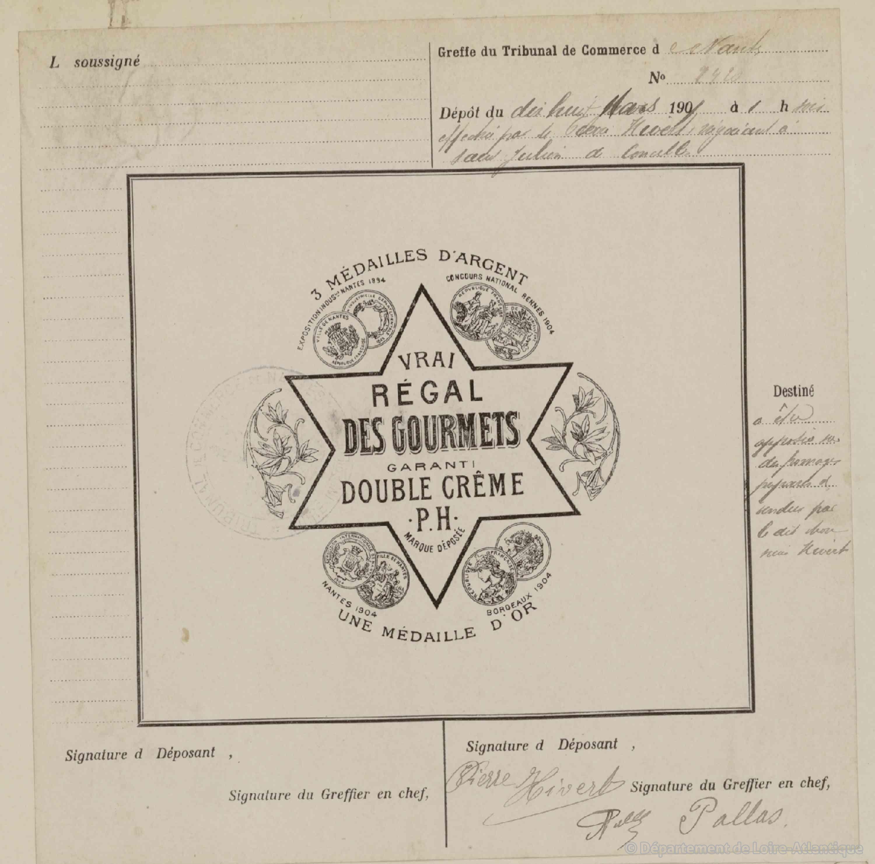 En mai 1904, à juste 49 ans, Pierre HIVERT se dit fier de sa réussite. Depuis plusieurs années avec un sens aigu du contact et du commerce il cherche sans cesse de nouveaux clients pour écouler beurres et fromages confectionnés « au Château » à Saint-Julien. C’est l’objet de sa visite du jour, le 27 mai 1904, à l’exposition internationale de Nantes. Il vient y livrer plusieurs exemplaires de la tomme fromagère concelloise appelé le « régal des gourmets » pour le concours de l’alimentation qui aura lieu le lendemain.