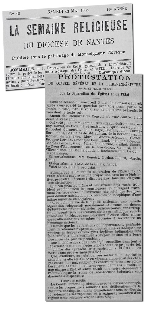 La conversation roule sur l’actualité du moment et le dernier numéro de la « Semaine religieuse » dont le prêtre a pris soin de découper l’article. Lecture faite, tous les hommes approuvent la position du Conseil Général de la Loire-Inférieure.