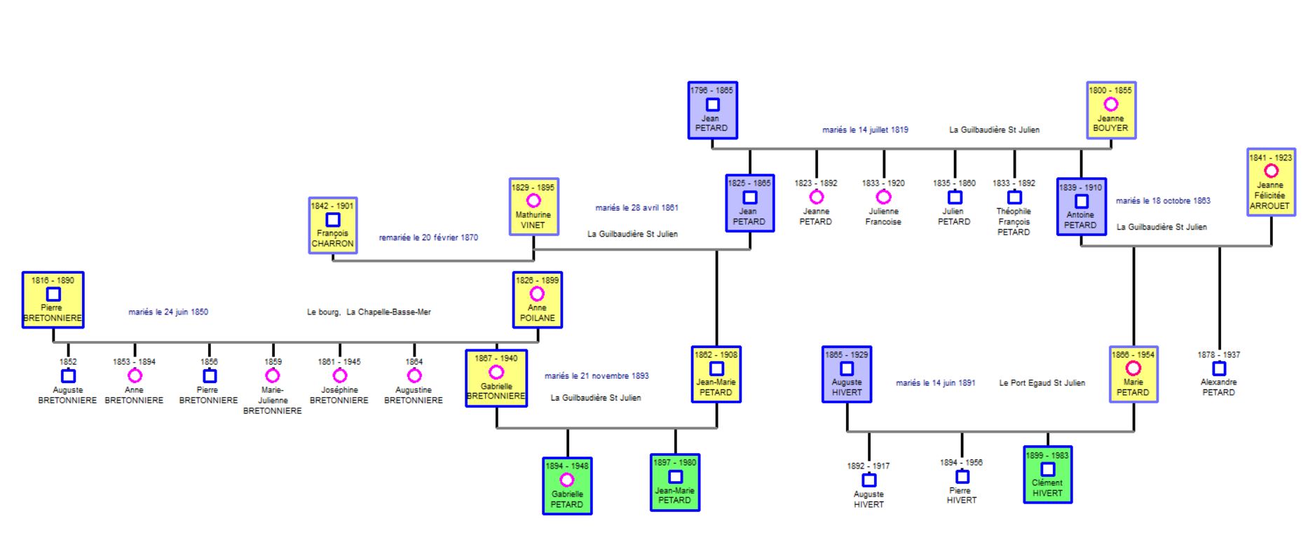 En remerciant son ami du cadeau fait à Gabrielle, Jean-Marie évoquera, outre les tensions dans la famille BRETONNIÈRE, cet échange avec son beau-frère… et Julien de répondre : « Je viens de relire votre lettre et j’y trouve à propos de la retraite du doyen de Bourgneuf et aussi de l’exil de l’aumônier des sœurs de St Gildas un tableau de cette famille d’autrefois qui s’émiette hélas elle aussi. J’ai pu voir moi-même dans quelques circonstances importantes la persistance de l’esprit patriarcal. »