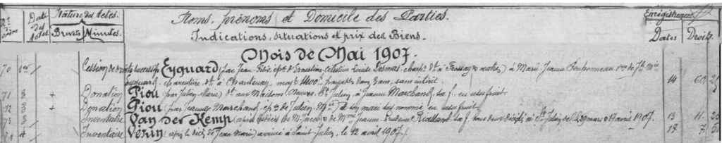 Raoul ajoute : « je vous savais proche de mon père qui appréciait votre compagnie. Aussi je souhaiterais que vous soyez témoin de l’inventaire des biens de la gentilhommière prévu le 13 mai prochain et organisé par le notaire Léon GASTON. Celui-ci vient d’apposer les scellés sur la propriété aujourd’hui même.