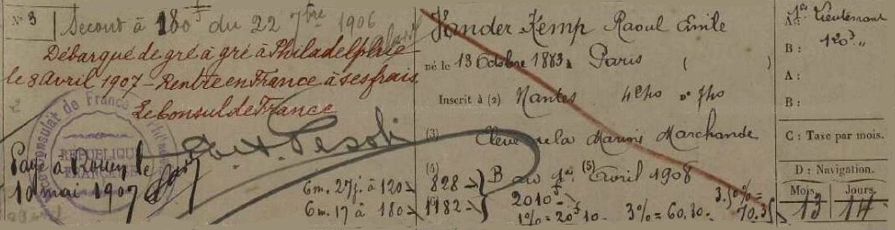 Raoul le salue rapidement et ajoute la gorge nouée : « Pierre, je voulais vous remercier pour l’appui que vous avez apporté à mon oncle, John Mayne Van der Kemp, lors du décès de mes parents. J’ai appris la triste nouvelle du décès de mon père, à peine débarqué du “Quévilly”, à Philadelphie le 8 avril par le Consul de France et je suis rentré au plus vite par le premier “transatlantique” pour voir mourir ma mère de la même maladie foudroyante que mon père, il y a à peine quinze jours ».