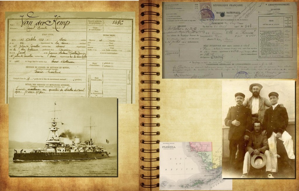 Les trois hommes n’ont pas vu passé le temps. Ils ont écouté Raoul sans l’interrompre car il a le don pour capter l’attention de son auditoire. Tournant encore les pages de son cahier de photos, Raoul ajoute : « j’ai été ensuite élève militaire sur le Brennus, un cuirassé militaire pendant deux ans avant d’être rendu à la vie civile. Aujourd’hui je traverse seulement l’Atlantique : d’abord l’an dernier à bord du bateau à vapeur « Ville de Rouen » en tant que 1er lieutenant avec plusieurs allers-retours à Key-West à la pointe de la Floride… mais j’aime trop la vie marine à voile et me voilà depuis deux ans comme second sur le « Quevilly », mais c’est une autre histoire ! ».