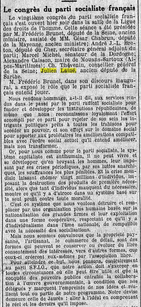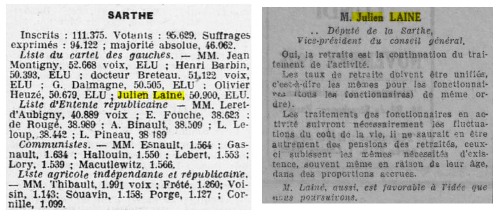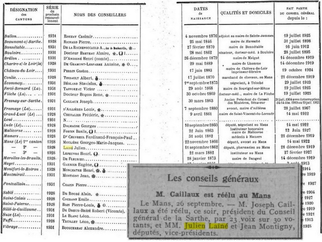 Julien LAINÉ ne se représenta pas aux élections de 1928 abandonnant peu à peu sa carrière politique.