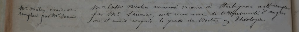 L’année précédente, au mois de janvier, est arrivé à Saint-Julien, en remplacement de l’abbé NICOLON parti pour la paroisse d’Herbignac, un vicaire un peu atypique, originaire du village de Ruscouard à Vieillevigne : l’abbé Auguste Saunier. Sa venue a fait débat car à 28 ans c’était son premier poste. Certains paroissiens ont enquêté et ont su qu’il était précédemment étudiant à la faculté catholique de l’ouest à Angers où il venait de finir un doctorat en théologie…