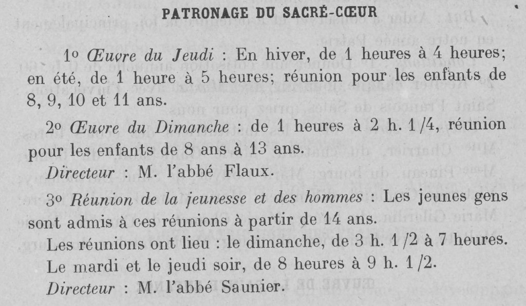 Existent aussi les patronages paroissiaux, leviers d’apostolat de la jeunesse, dirigés par de jeunes vicaires. On en dénombre 1125 en France en 1895.