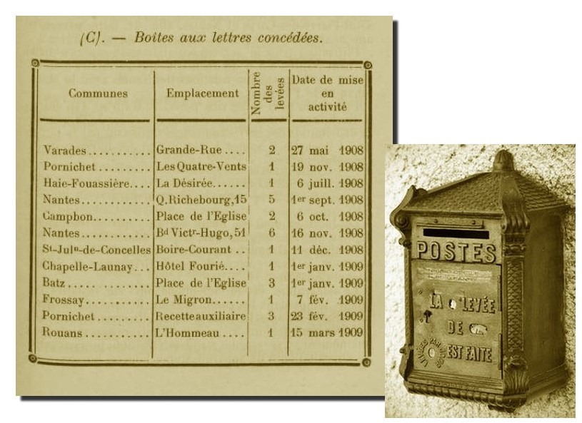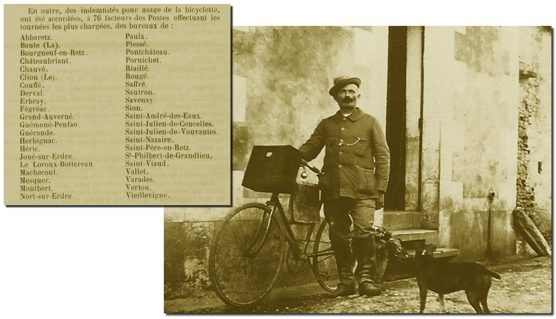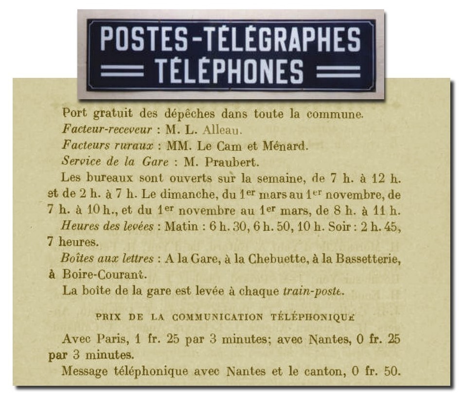 Puis à l’aube du 20ème siècle les courriers et télégrammes se sont multipliés. Louis est devenu facteur-receveur et a laissé peu à peu les tournées à Messieurs MENARD et à PAUBERT pour les services de la poste à la Gare. Il a fallu attendre l’année 1909 pour voir arriver un nouveau facteur, Gilles LE CAM précédemment en poste à Varades, qui a pris en charge une nouvelle tournée de 16 kilomètres. Cette même année, de nouvelles boites aux lettres ont vu le jour dans certains gros villages de la commune.