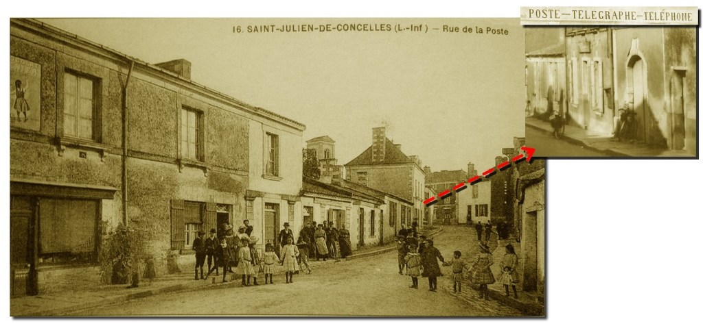 Gabrielle aime cette ambiance pleine de vie de la Poste de St Julien. Ce jour là, nombre de personnes se pressent au bureau de poste car beaucoup des concellois profitent de leur sortie hebdomadaire au bourg pour effecteur des courses ou des démarches en tout genre… Poster une carte ou un courrier, affranchir une lettre, acheter des timbres, chercher une dépêche, passer ou recevoir une communication téléphonique, envoyer un mandat… Louis ALLEAU, seul ce jour là, a bien du mal à répondre à toutes les sollicitations.