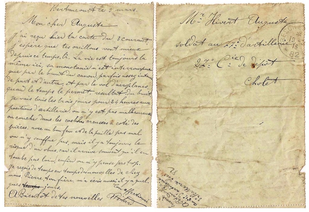 Les deux hommes échangeront tout au long de la guerre jusqu’à la disparition d’Auguste dans les tranchées du Godat dans la Marne.