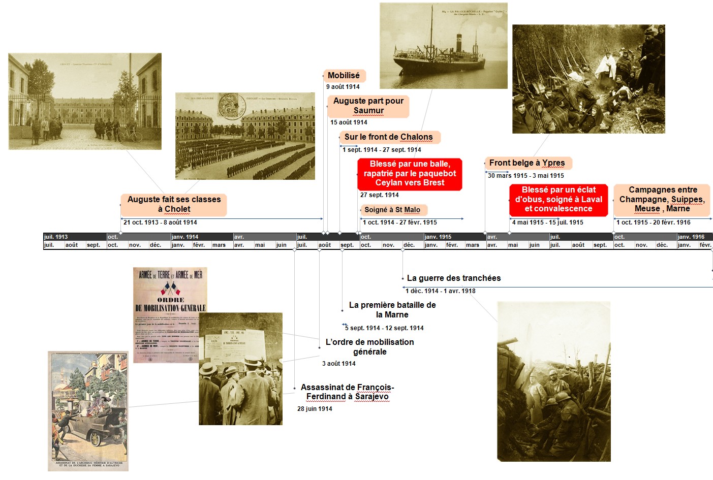 Le 3 mai Auguste est blessé par un éclat d’obus au bras droit et immédiatement évacué vers Dunkerque puis l’hôpital de Laval.