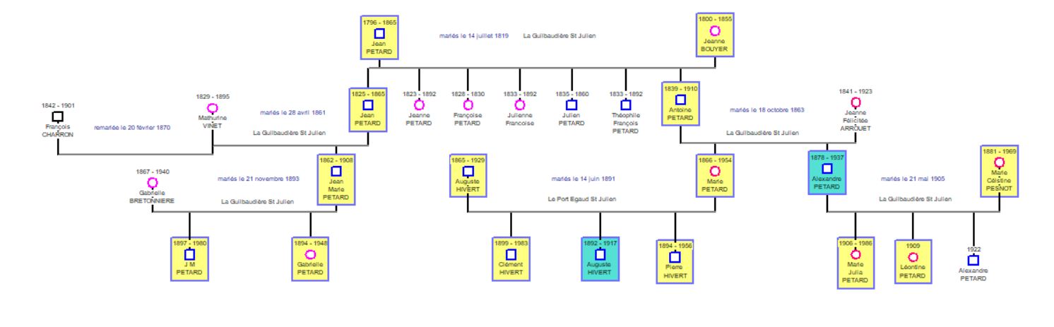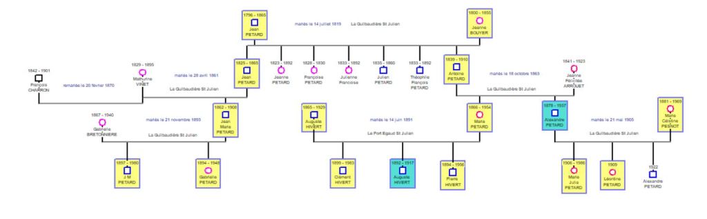 Plus tard cette correspondance se poursuivra entre Auguste et son parrain ainsi que ses deux filles nées de son mariage avec Marie Célestine PESNOT du Loroux- Bottereau le 21 mai 1905.