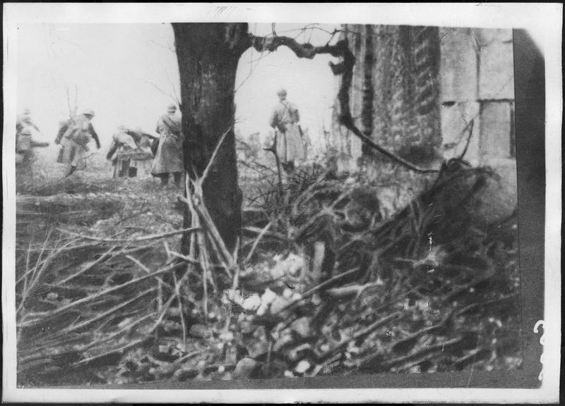 Je vais voir pour me renseigner à mes côtés, plus personne ! Qu’est-ce qui est arrivé ? Je me renseigne, rien à savoir. Mais les autres sont partis en vitesse. Nous partons pour rejoindre les autres, connaissant mon itinéraire, il faut que je retrouve les camarades qui sont sûrement dans les tranchées boches, nous sortons donc des tranchées. Les mitrailleuses crépitent. Nous passons de trou en trou d’obus. Notre artillerie lourde et de tranchée a fait du beau travail. Pas un mètre de terrain n’a eu son compte, des trous d’une profondeur ! Plus un bout de fil de fer barbelé. Nous voyons quelques blessés et les premiers abris boches qui sont intacts. Ce sont des abris en ciment armé.