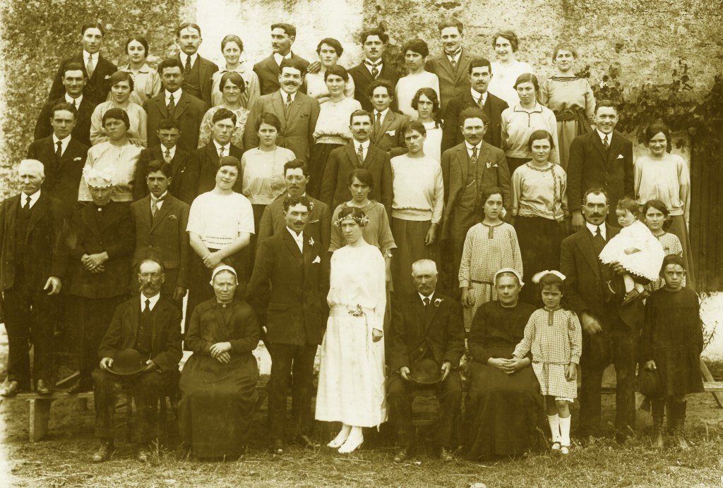 1. Bonjour Michel, J’espère que tout va bien. J’ ai lu et regardé avec attention le mariage de Pierre et d’Henriette. Il me semble l’avoir cette photo et en regardant de près, tout en haut en 3ème position on reconnait Marie Josèphe (la sœur de Julien.) toujours en haut en 5ème position Denise ma maman qui pose sa tête sur l épaule de Eugène(le frère de Rachelle, Clément Ménard, me semble t-il, serait le 4ème de la 3eme rangée. Pour l’instant c’est tout. Je t’embrasse Michel . Merci encore pour tout le boulot que tu fais.
