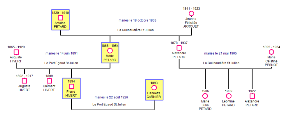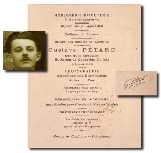 2. Jean Guillet, gendre de Gustave Pétard photographe qui a immortalisé bien des visages de toute la région. Vous vous interrogez, m’a-t-on dit, sur les liens entre les Pétard. A ma connaissance aucun. Par contre la mère de Gustave, Adèle THOMAS avait un frère à la Guilbaudière, JEAN . Y-a-t-il autre lien que voisinage ? A votre disposition.