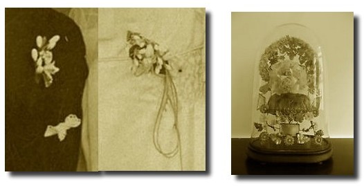 Les hommes portent des rubans, les jeunes garçons sont en costume marin. Pierre et Clément arborent à la boutonnière une fleur d’oranger artificielle, et Henriette,  sur sa robe, un petit bouquet qui sera ensuite conservé dans la maison du Port-Egaud sous un globe de verre.