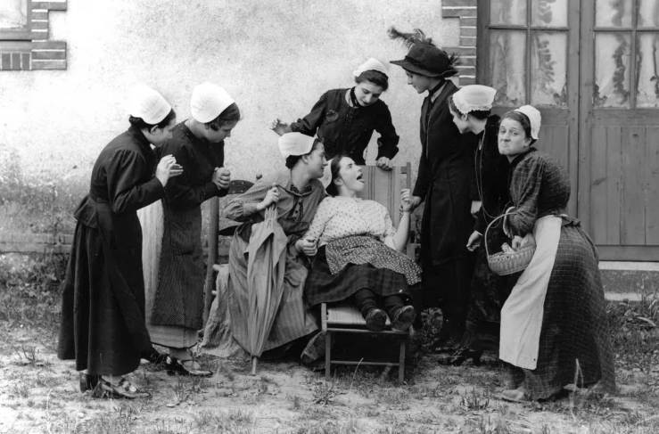 Pièce « Âmes d’esclaves » avec de gauche à droite : Suzanne BOUYER, Renée BRAUD, Augustine VEZIN, Marie Joseph BATARD, Augusta RIPOCHE, Mélanie CORNET, Marie-Josèphe PILOQUET, Antoinette PIGEAU, Clémentine RIPOCHE, Denise Royer, Joséphine MOREAU – Photo de Gustave Pétard