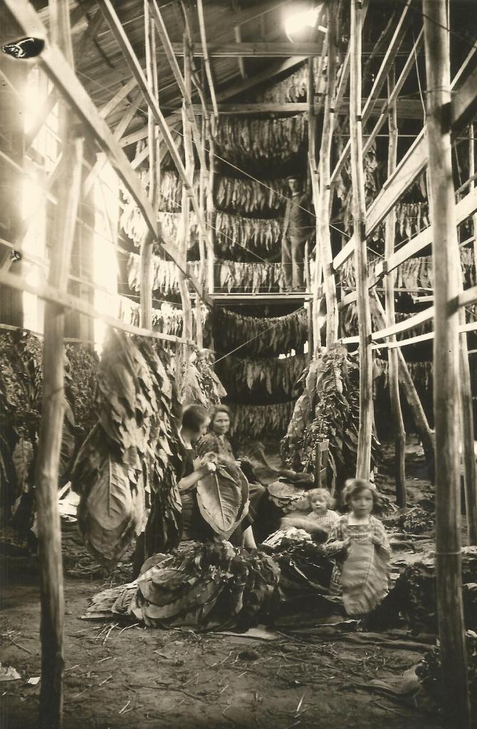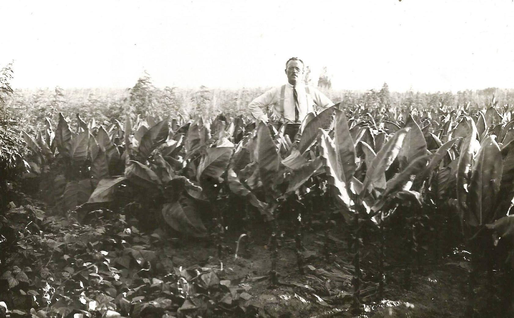 « Dans le même temps on procède aux opérations de cueillette. On commence par effeuillerles feuilles basses, 3 feuilles par pied seulement. On les met en toile des sacs en toile de jute disposés sur la charrette puis on les rentre rapidement sous le bâtiment d’enfilage pour que le tabac ne fermente pas. Les trois feuilles médianes sont prélevées environ quinze jours plus tard puis deux semaines ensuite et les feuilles de tête en dernier. Pendant cette période Monsieur Robert, le vérificateur des tabacs, est très présent dans les champs de tabac pour surveiller la cueillette des feuilles médianes et supérieures.