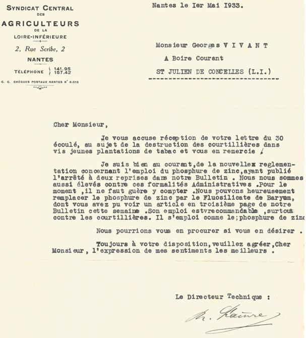 « Cher Clément, j’ai appris cette triste nouvelle… la perte d’un enfant nouveau-né est toujours un drame. Je m’associe à votre douleur, Gabrielle et toi, ainsi que le petit Auguste ! ». C’est par ces petits mots que Georges Vivant, l’ami de Clément introduit sa lettre du 11 octobre 1934. Le deuxième rendez-vous prévu fin octobre au village de Boire-Courant n’a donc pu avoir lieu, alors les deux hommes ont convenu de se voir avant la fin de l’année.