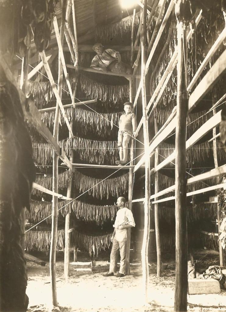 Les deux hommes se dirigent ensuite vers le séchoir pour y voir les guirlandes de tabac en attente d’être « manoquées ».