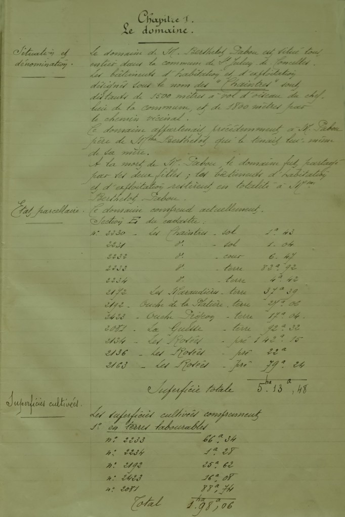 Dans le premier chapitre de l’étude, Th. BRETONNIÈRE passe tout d’abord en revue les spécificités du domaine, son état parcellaire