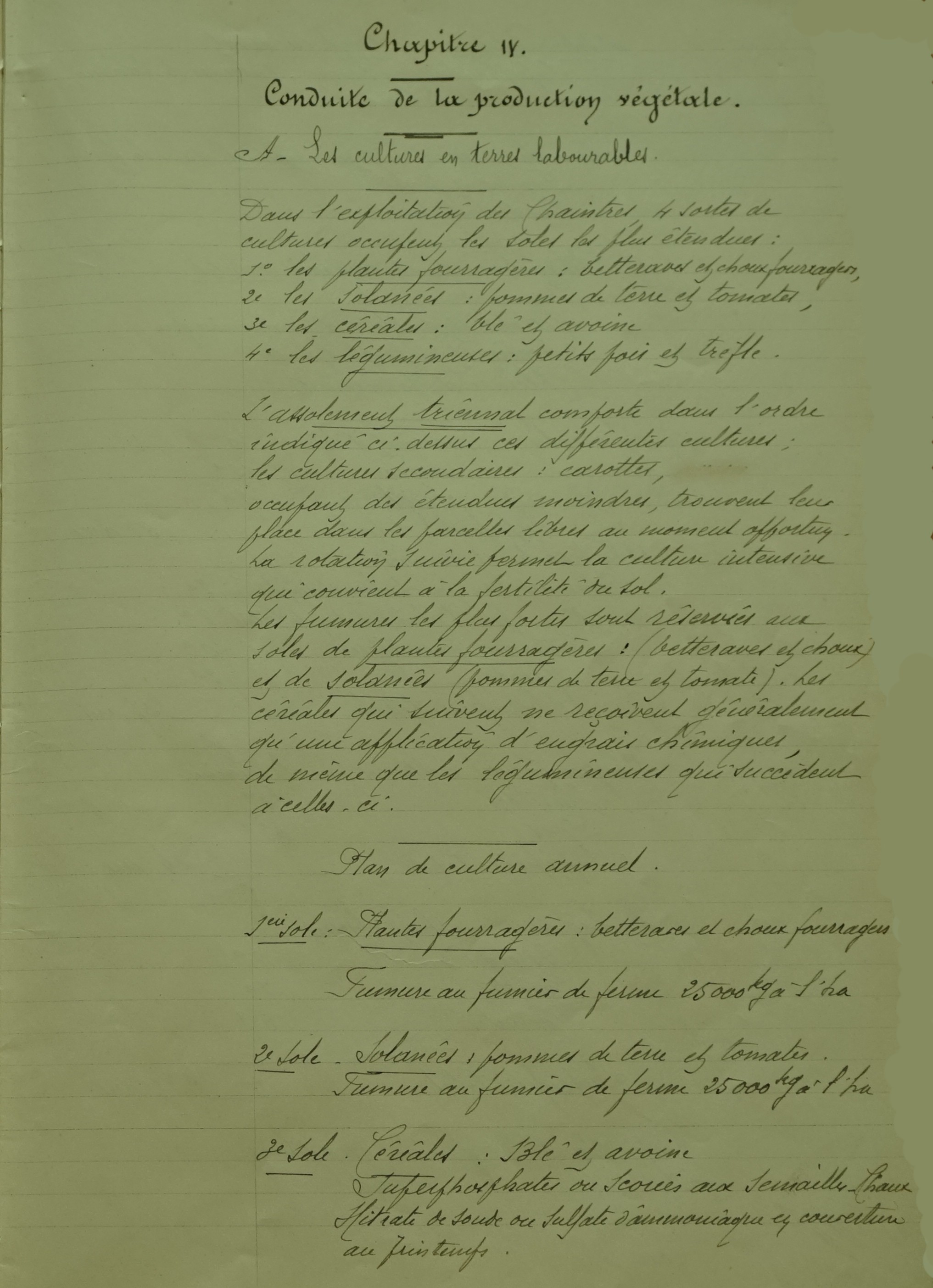 Les nombreuses rencontres qui ont suivi ont permis à Théophile BRETONNIÈRE d’écrire une monographie sur cette exploitation de 5 ha dont la moitié en terres labourables et l’autre en prairies.