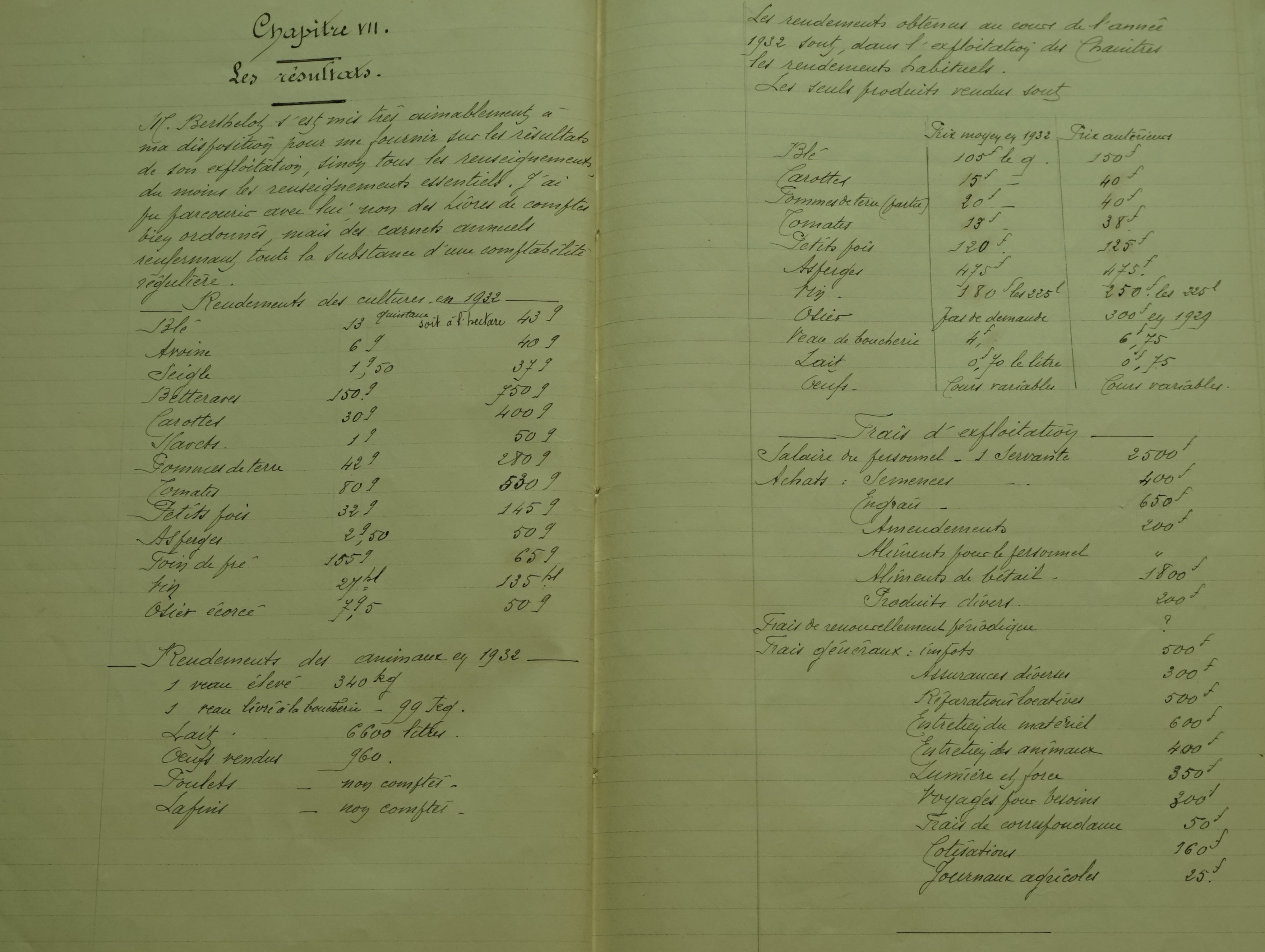 A la fin de cette monographie, Th. BRETONNIÈRE n’omet pas de faire l’analyse des résultats économiques de l’exploitation des Chaintres.