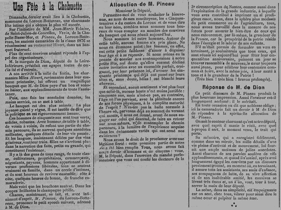 Merci à Monique, Jean et Josette BADEAU pour leur accueil et les entretiens réalisés ensemble en 2018 et 2019. Certains de leur propos ont été extraits du mémoire « Vivre au bord de l’eau à Saint-Julien-de-Concelles » de Marie CAPDECOMME et Marie PERCOT de l’association Terre à Terre de septembre 2011.
