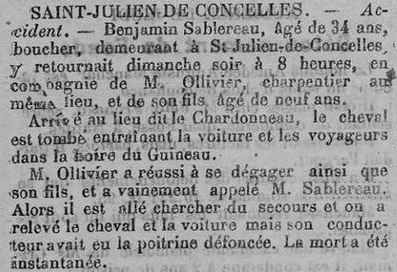 En 1908, Armandine décède à l’âge de 42 ans. «Edouard » se remarie l’année suivante avec Marie Amélie VEZIN, femme du boucher Benjamin SABLEREAU tristement disparu suite à un accident de cheval en décembre 1907.