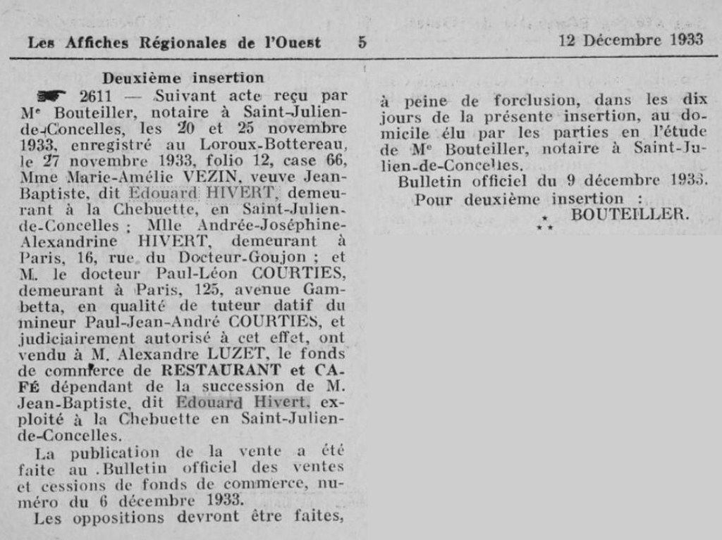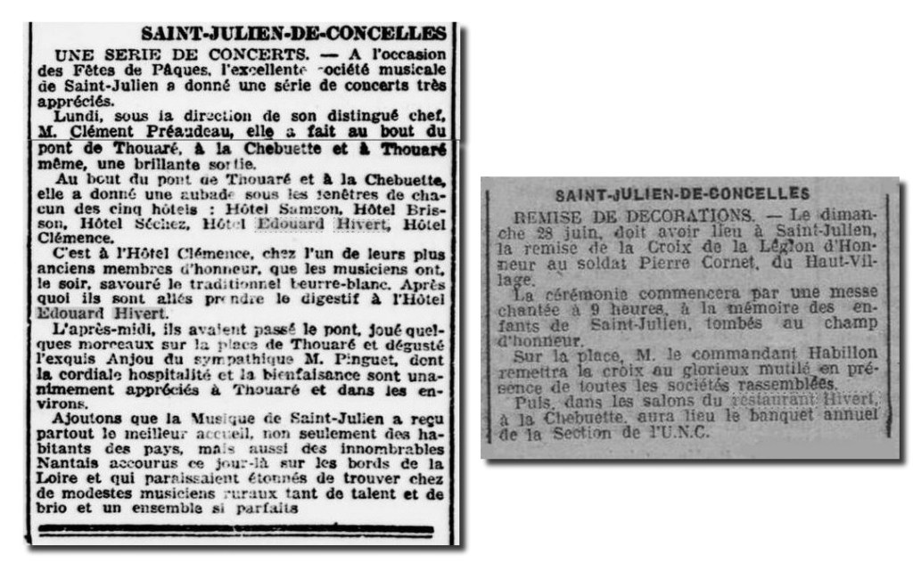 Le restaurant LUZET-BADEAU du village de la Chebuette à St Julien appartenait au début du siècle dernier à la famille HIVERT-POUPLARD. Mais pas de parenté proche avec les HIVERT du Port Egaud et de la Guilbaudière.