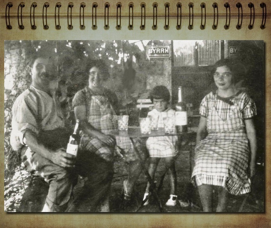 Mimi B. : « Je dois avoir 4 à 5 ans, je pense qu’on est en 1935. On est ici sur la terrasse du restaurant l’été . Je semble contrariée, je fais un peu la tête » ; Mimi P. : « Je reconnais sur la photo à droite Simone LESOURD, une fille du village du Marais Abraham à Saint Julien. Elle a fait une grande partie de sa carrière chez mon oncle et ma tante ».