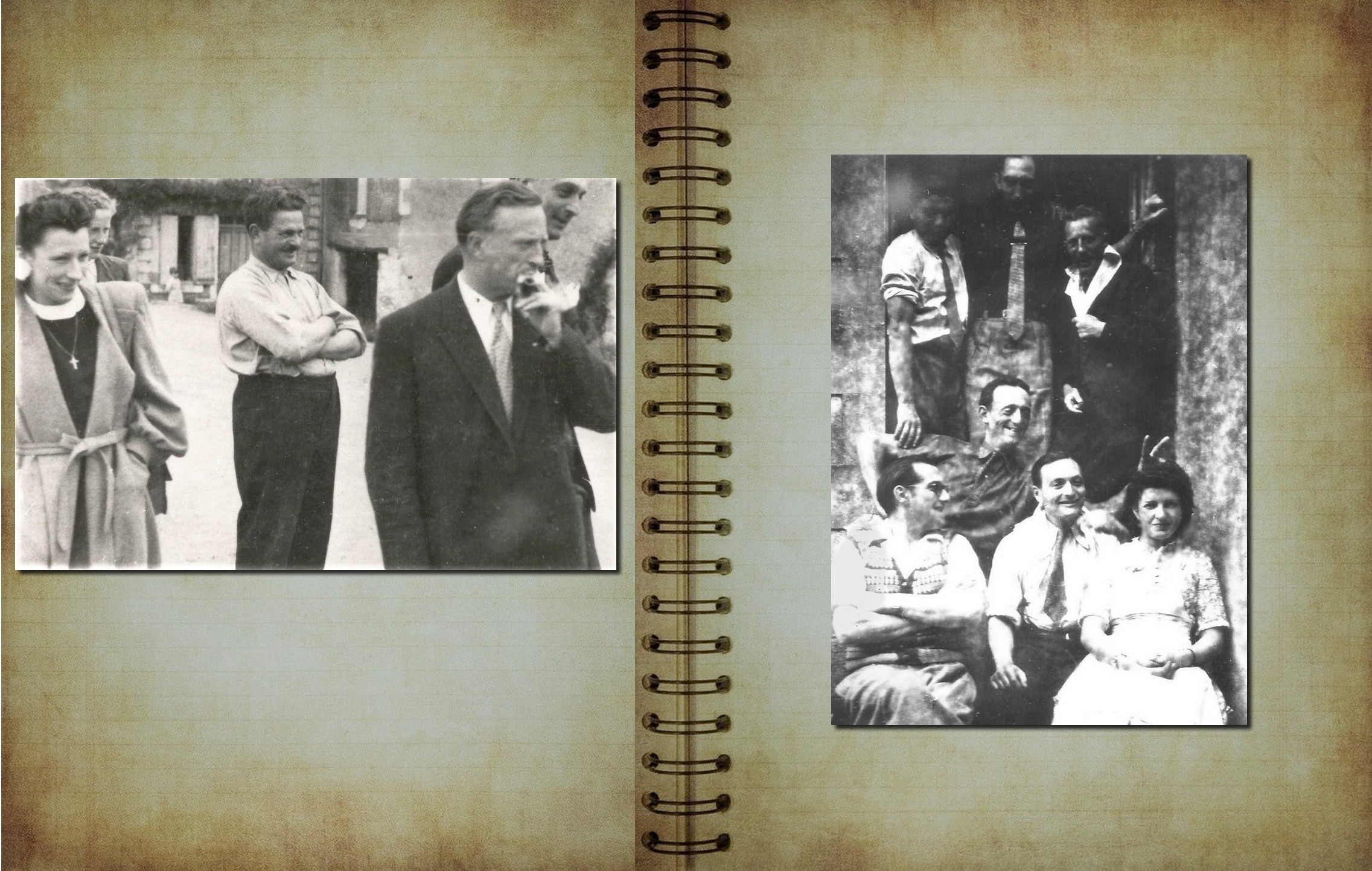 Mimi B. : « C’était aussi la rencontre des copains. Sur la photo de gauche je suis au centre de celle-ci avec maman à mes côtés puis Yvonne MORILLE, mariée ensuite à Alexandre VIAUD, derrière moi. On reconnait plus haut Gaby Goubert. Sur la photo de droite, Etienne BRIAND et Gaby JOUBERT portent respectivement François LUZET et un gars PARIS ».